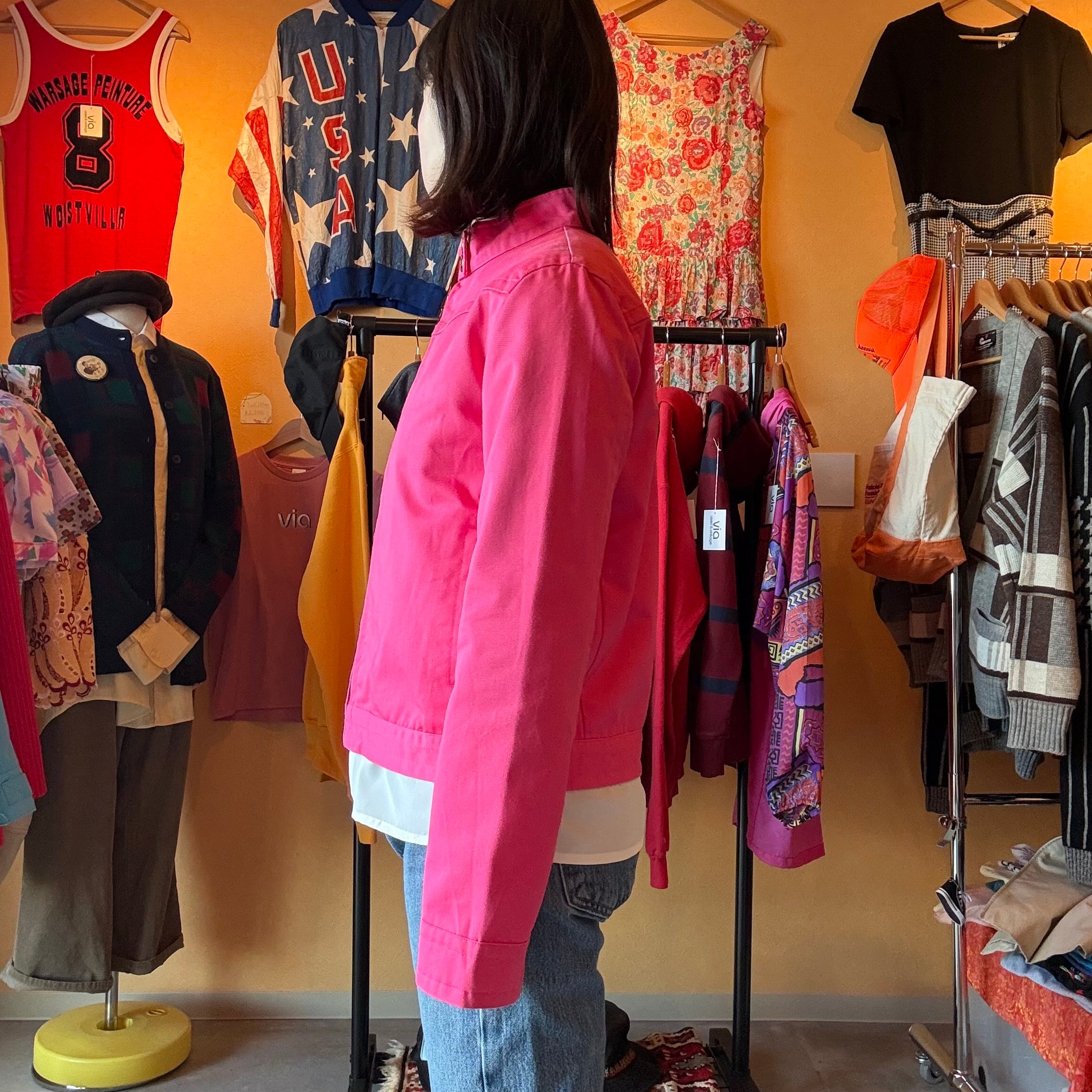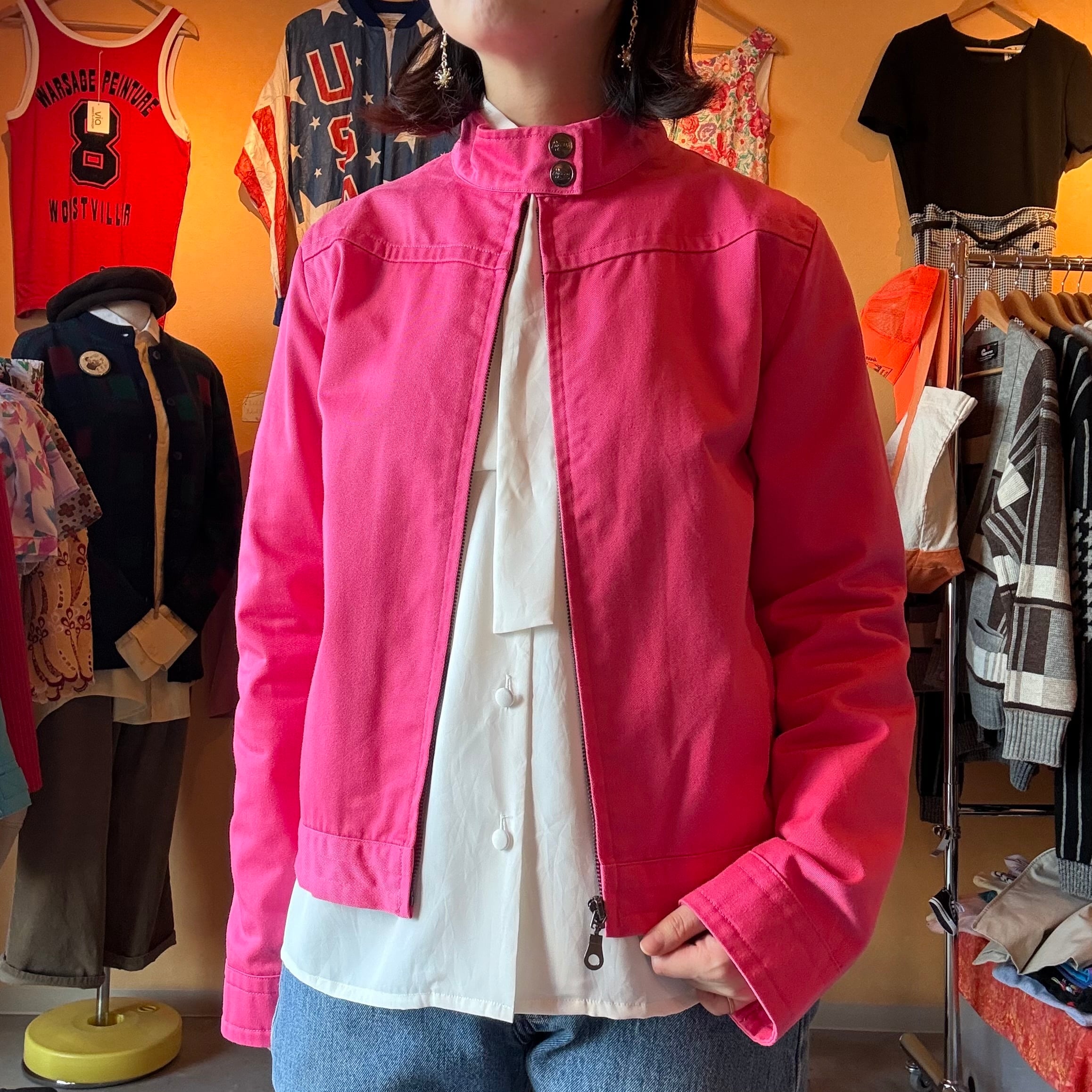 鮮やかなピンクがお洒落なジャケットです!