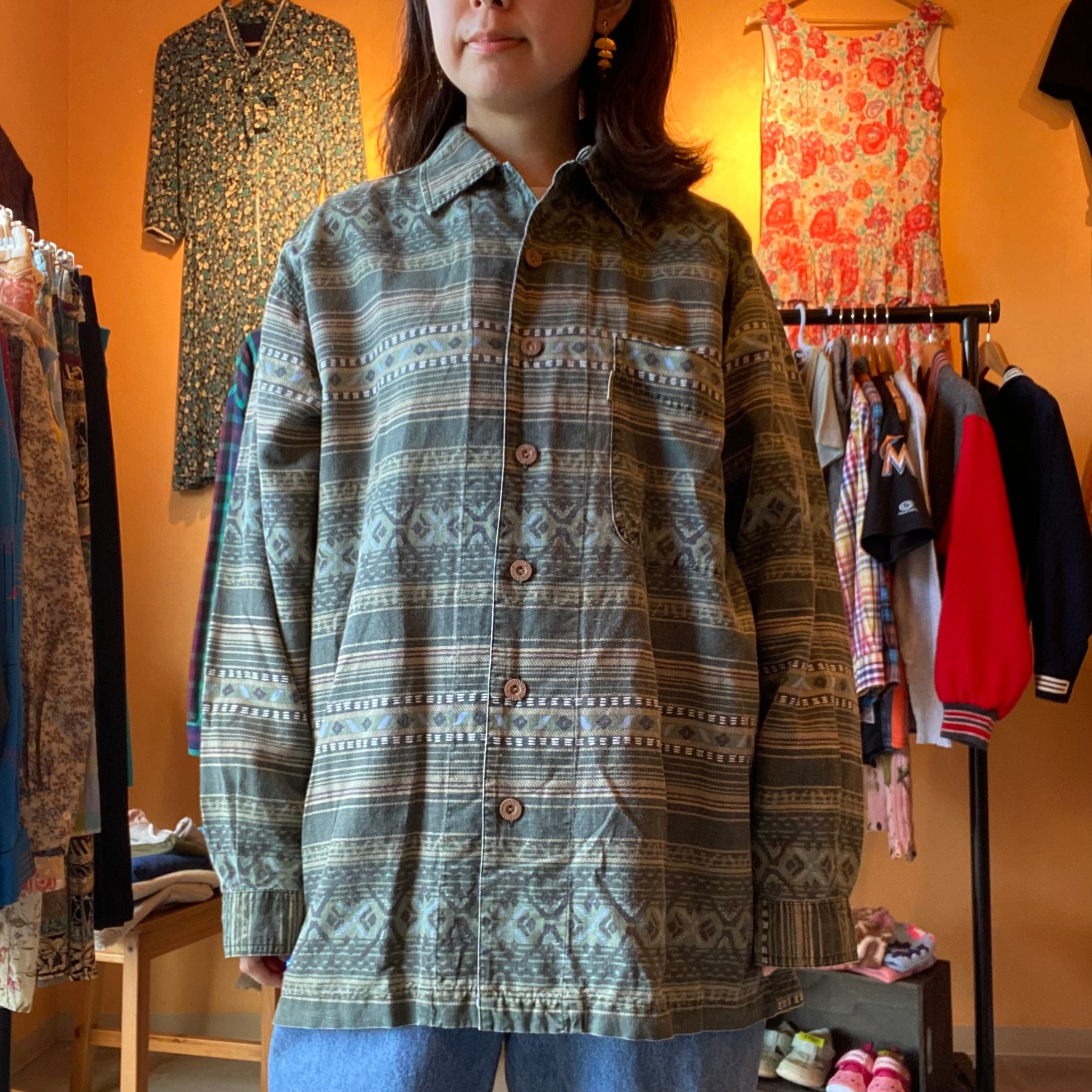 総柄でポイントになるのでアウターやカーディガンを羽織っても良いですね!