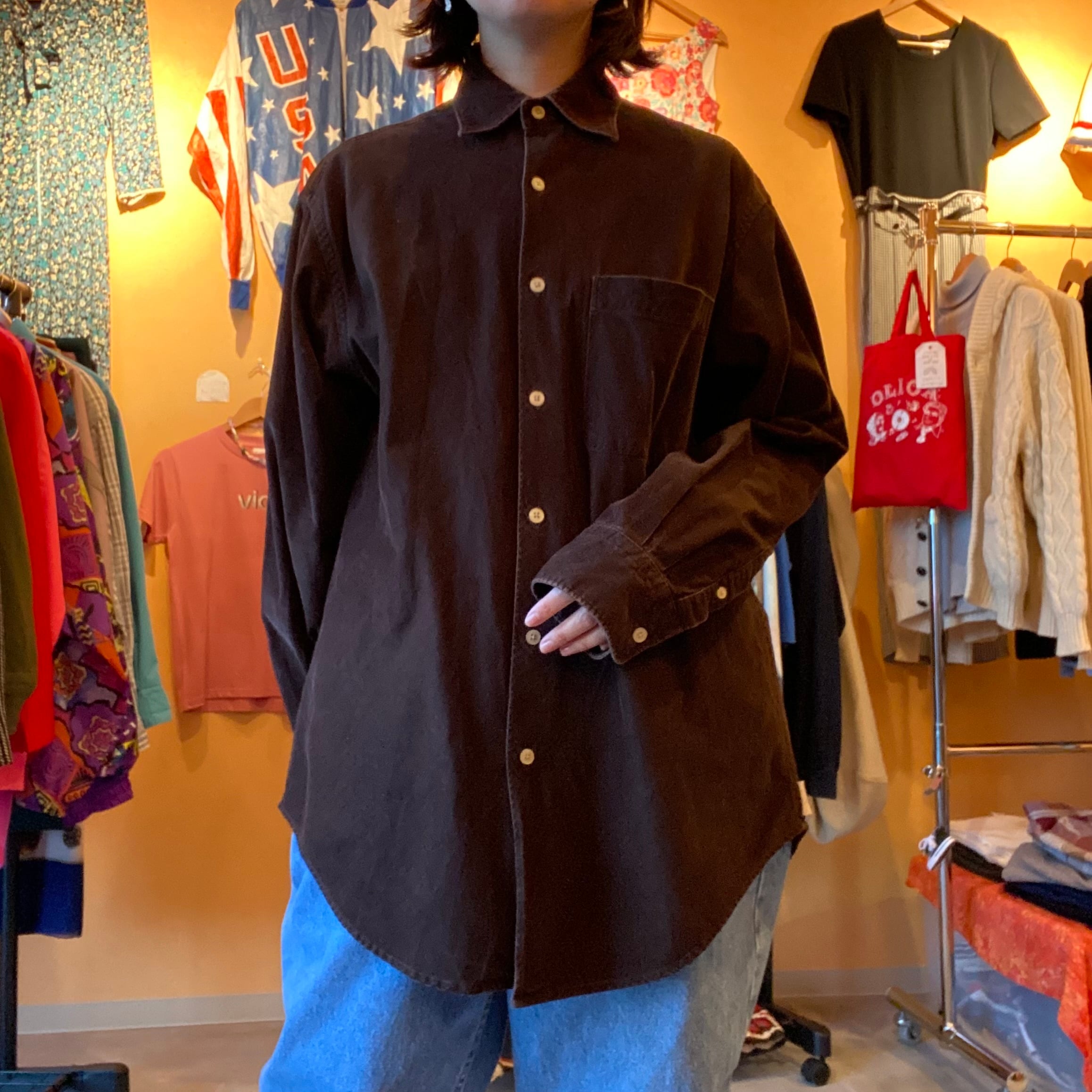 "NAUTICA" ブラウン コーデュロイ ロングスリーブ シャツ