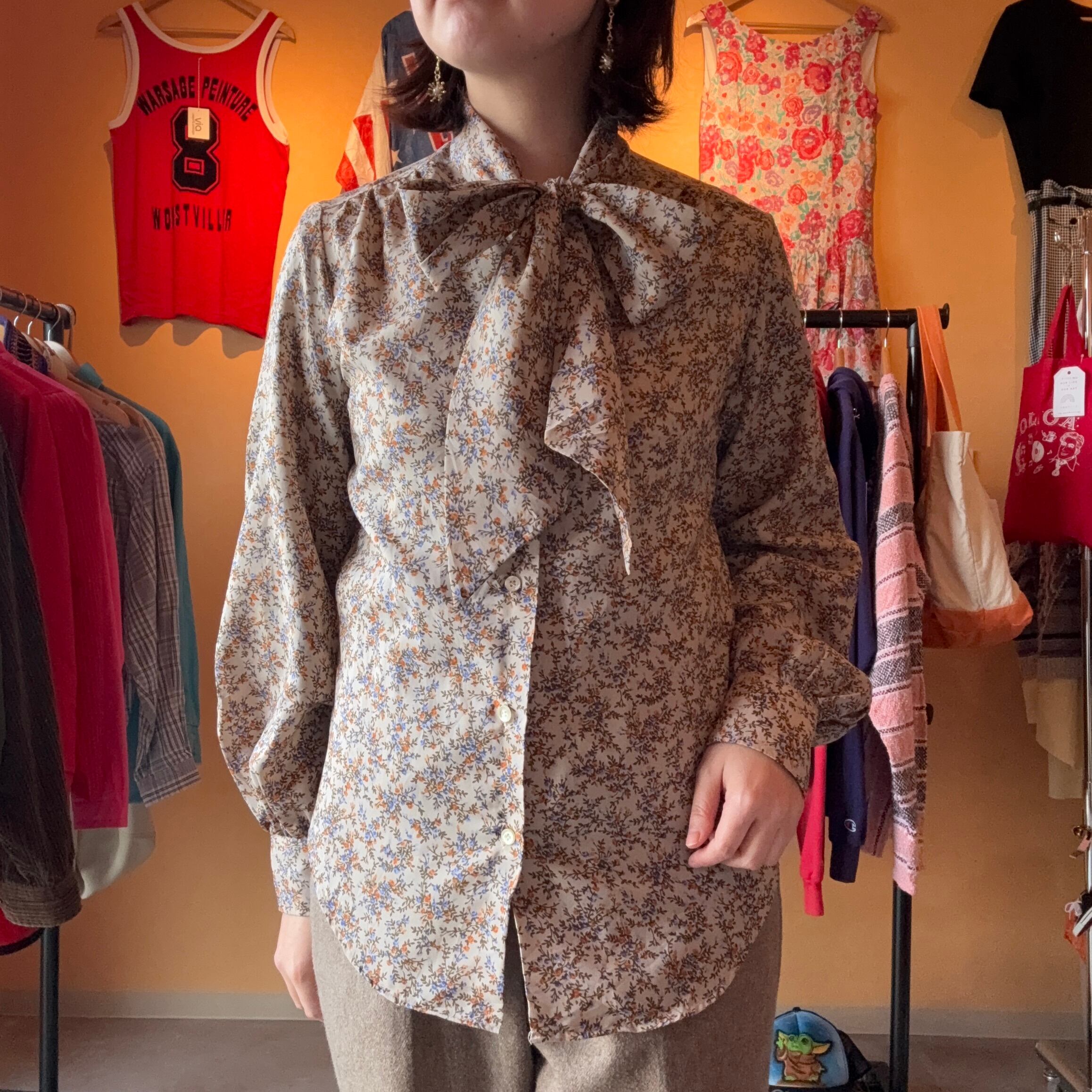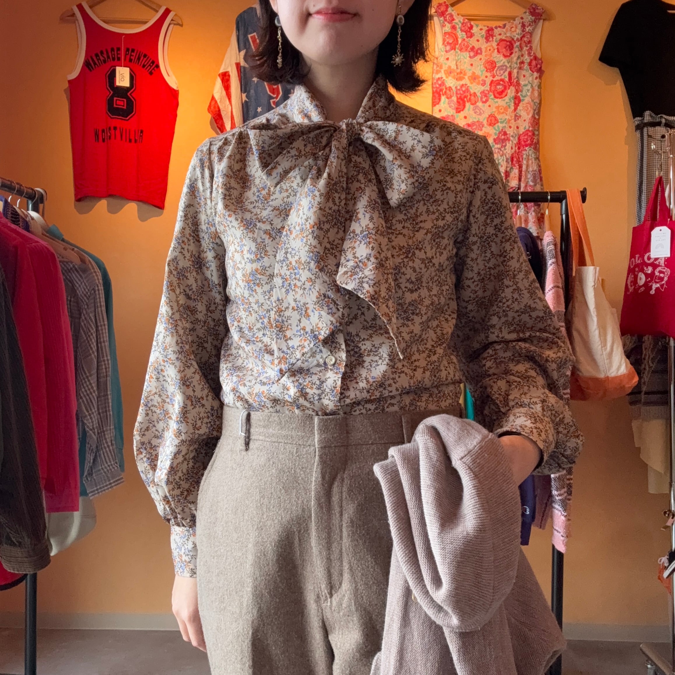 落ち着いたカラーの小花柄が可愛いブラウスです。