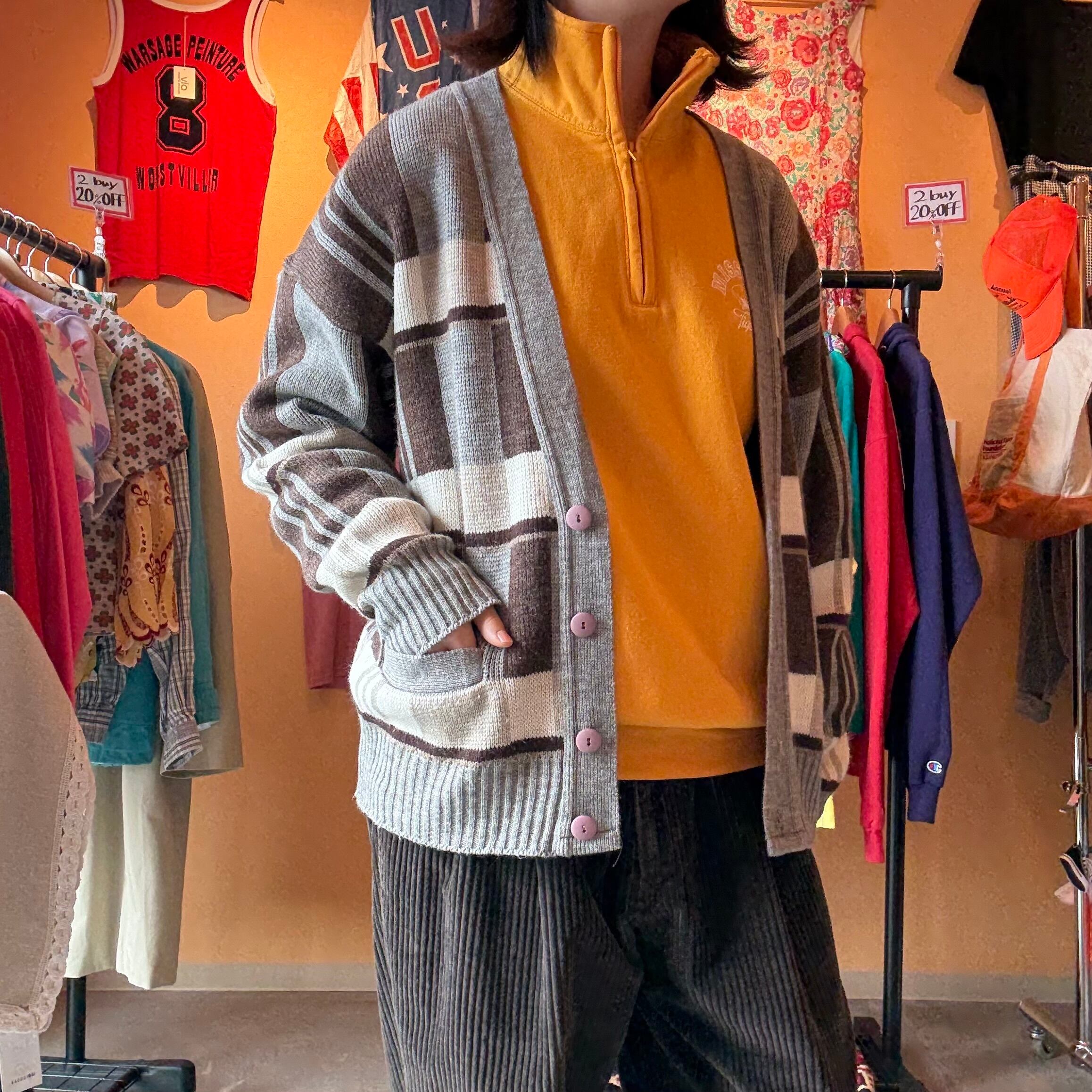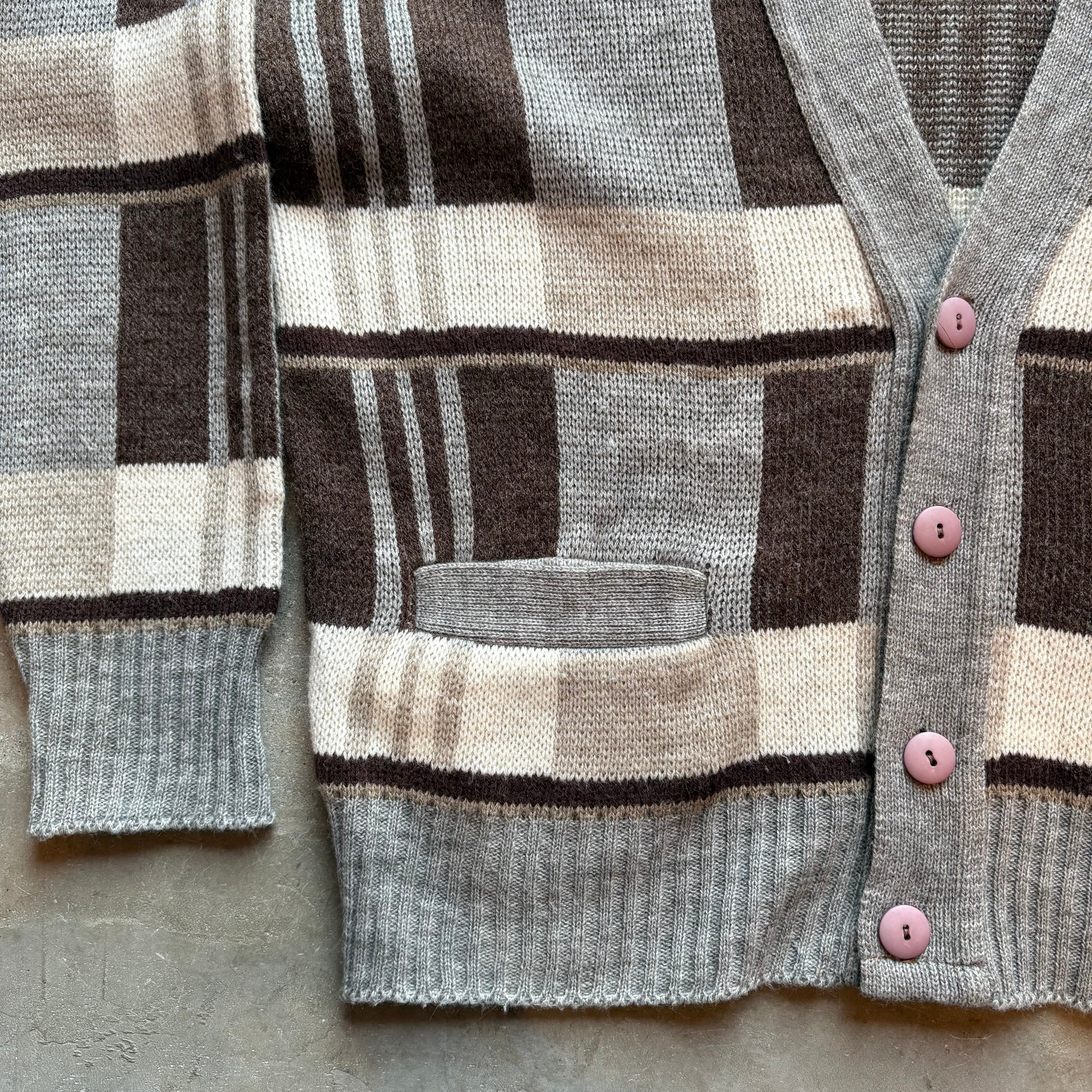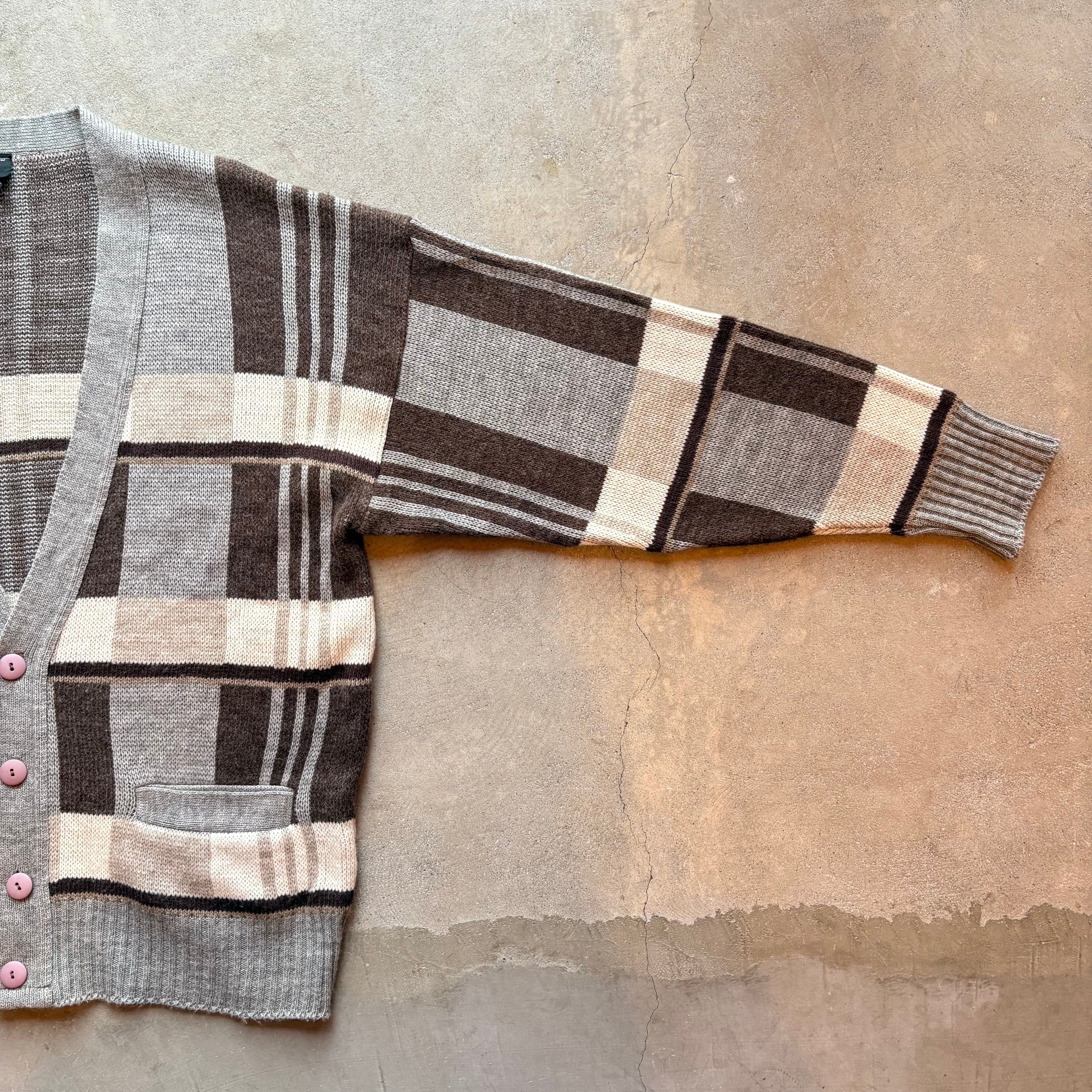 チェック柄 ニット カーディガン