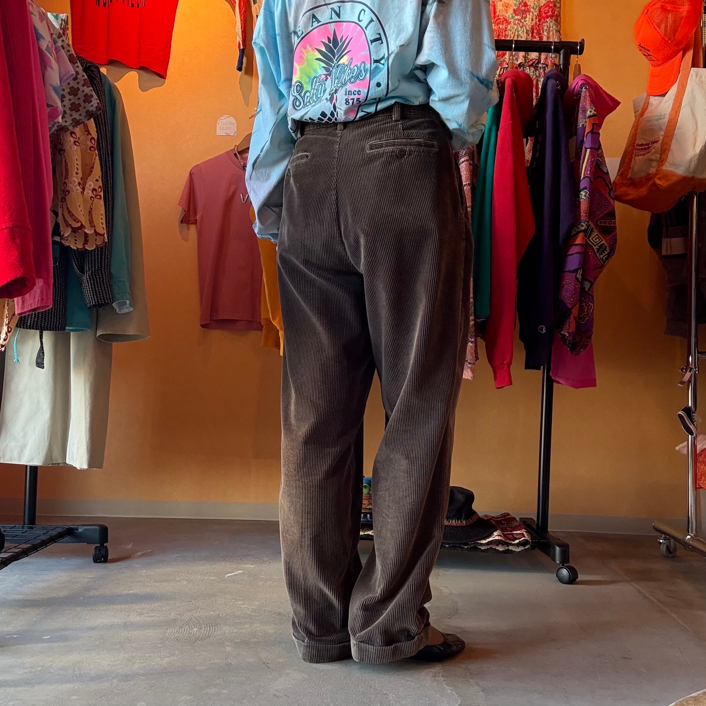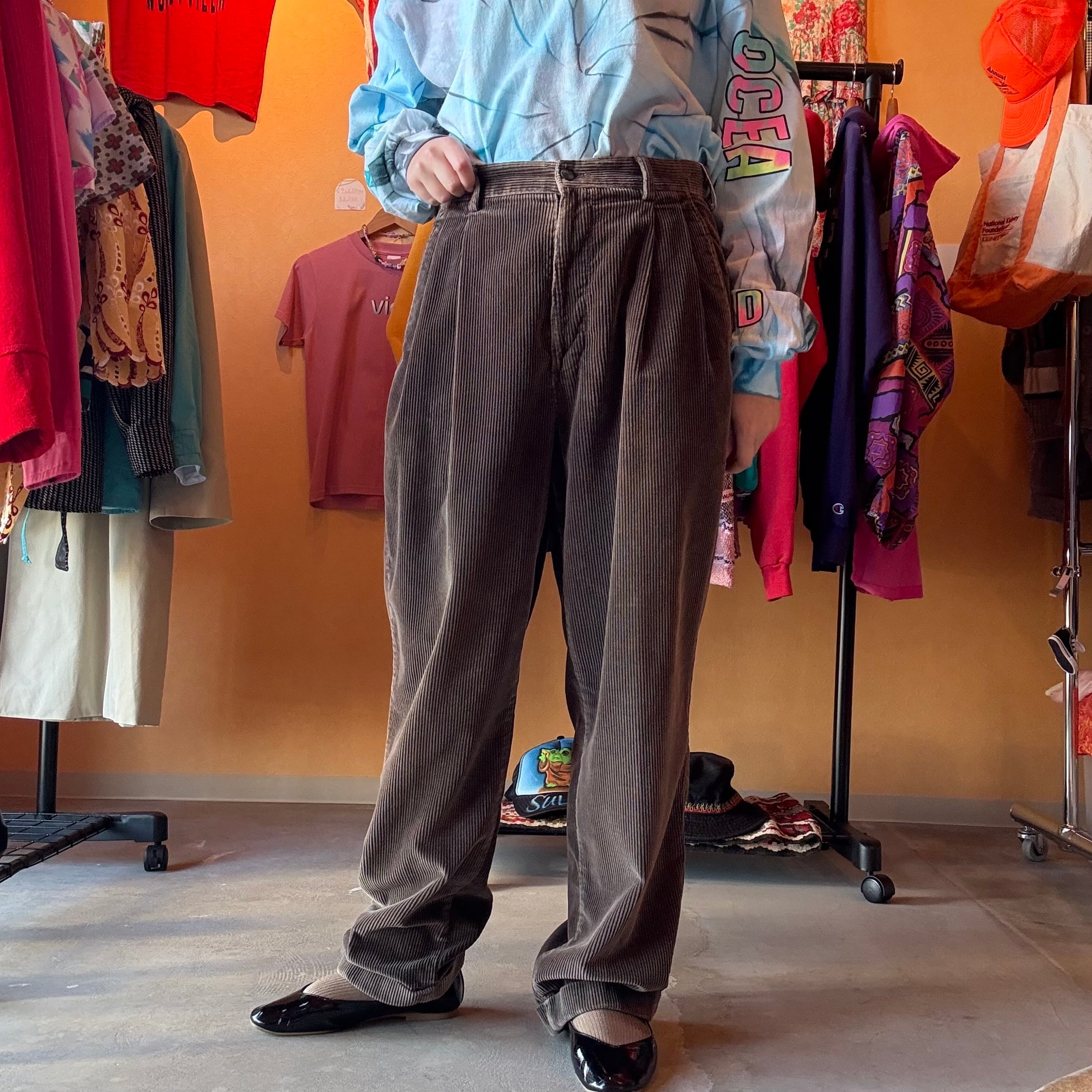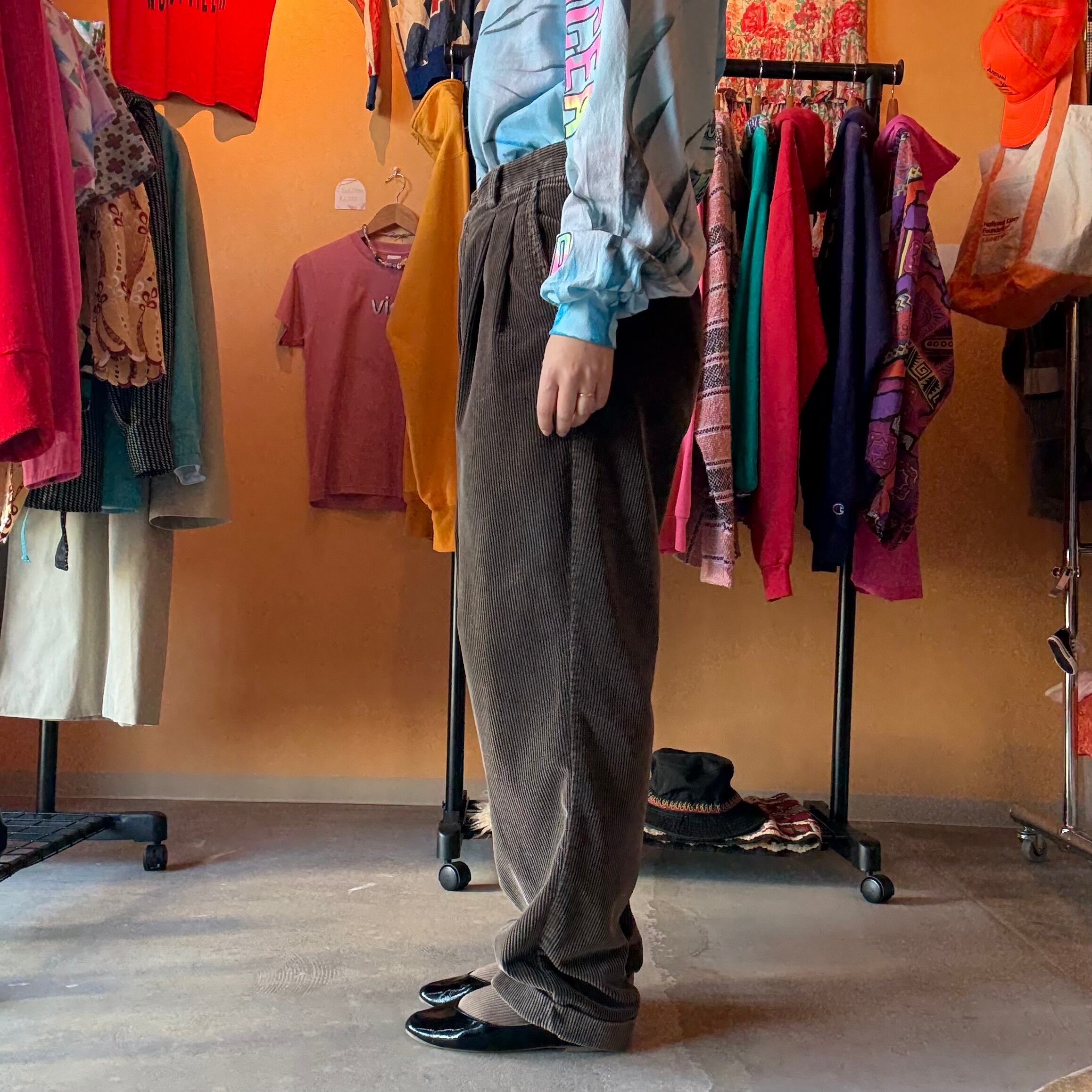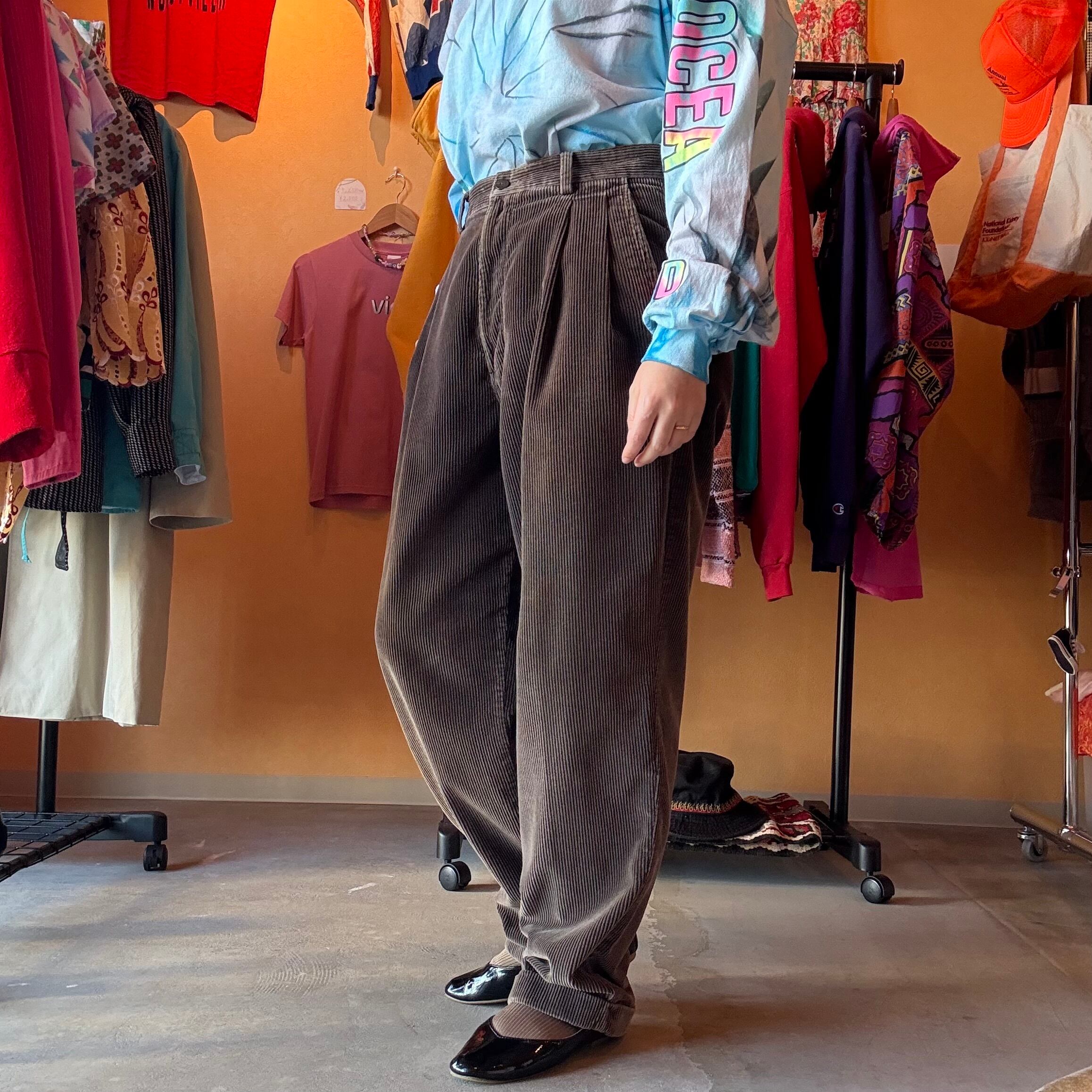 ブラウン コーデュロイパンツ 2タック