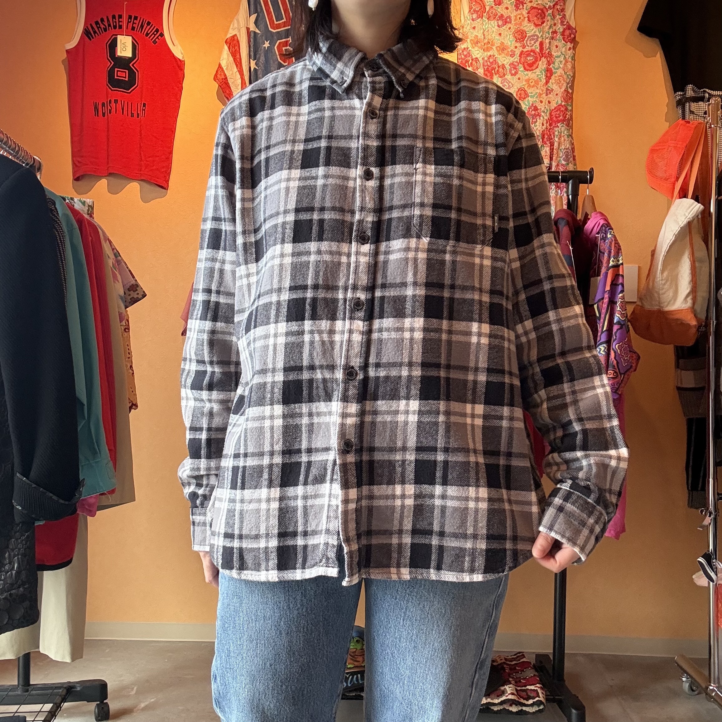 Eddie Bauer グレー チェックシャツ 柄シャツ