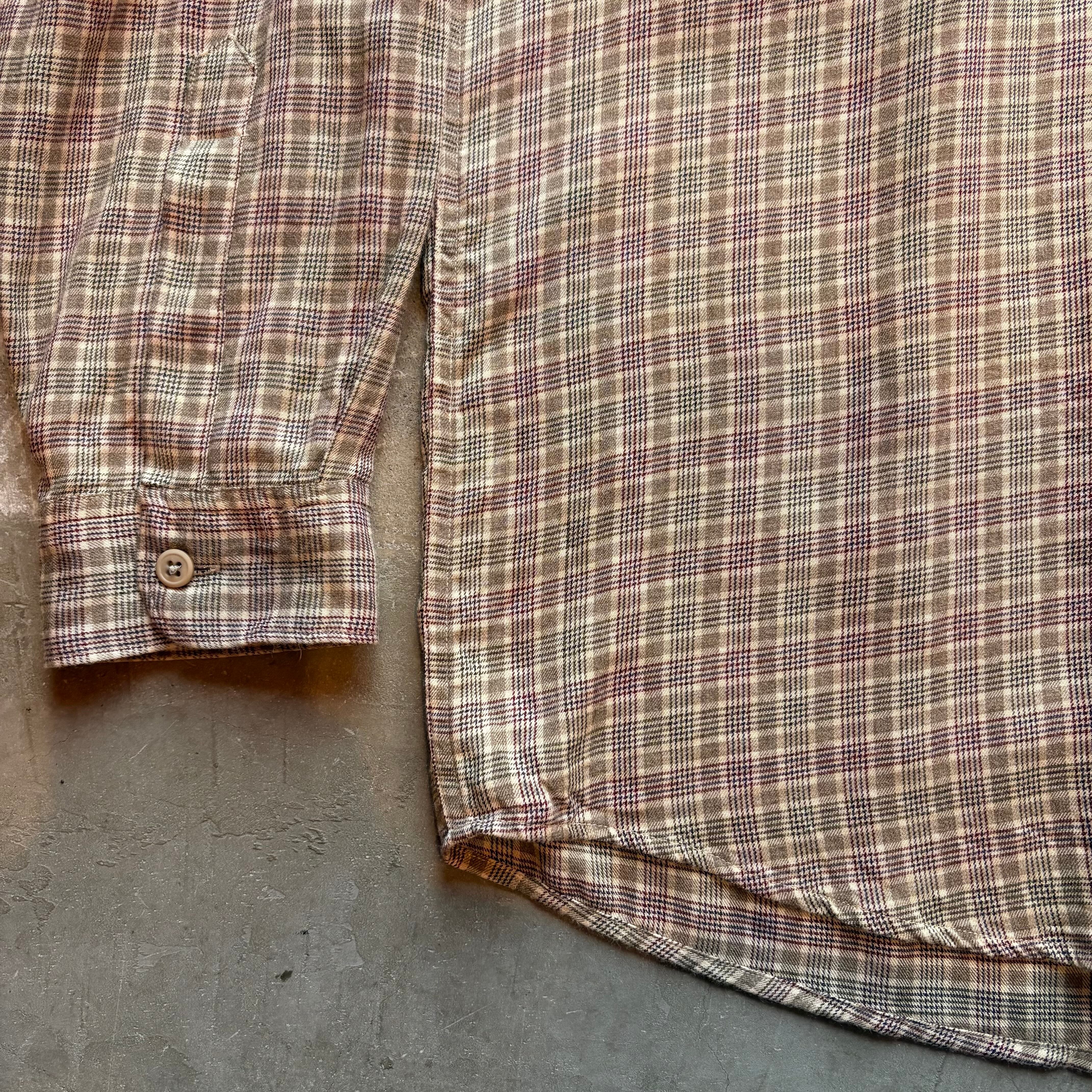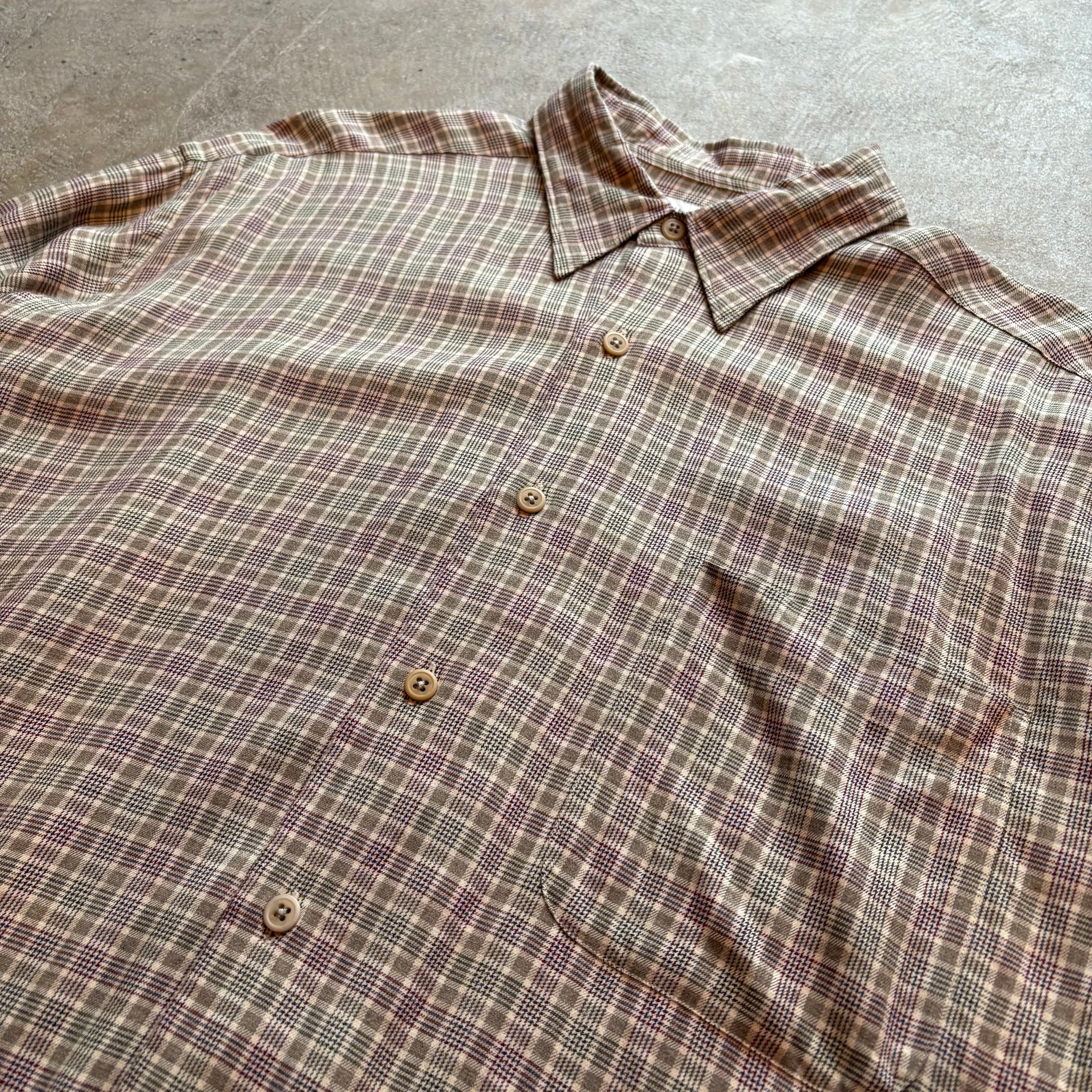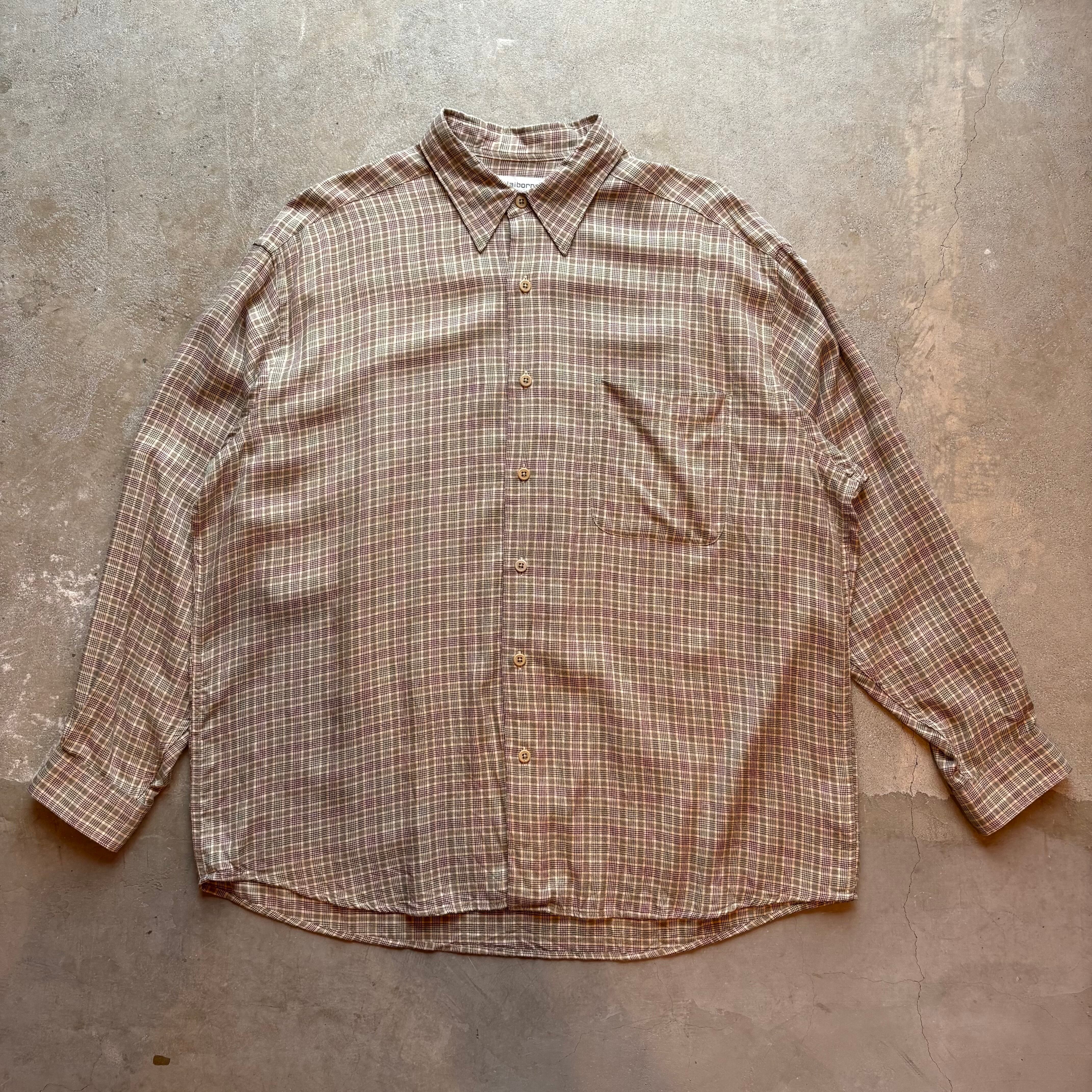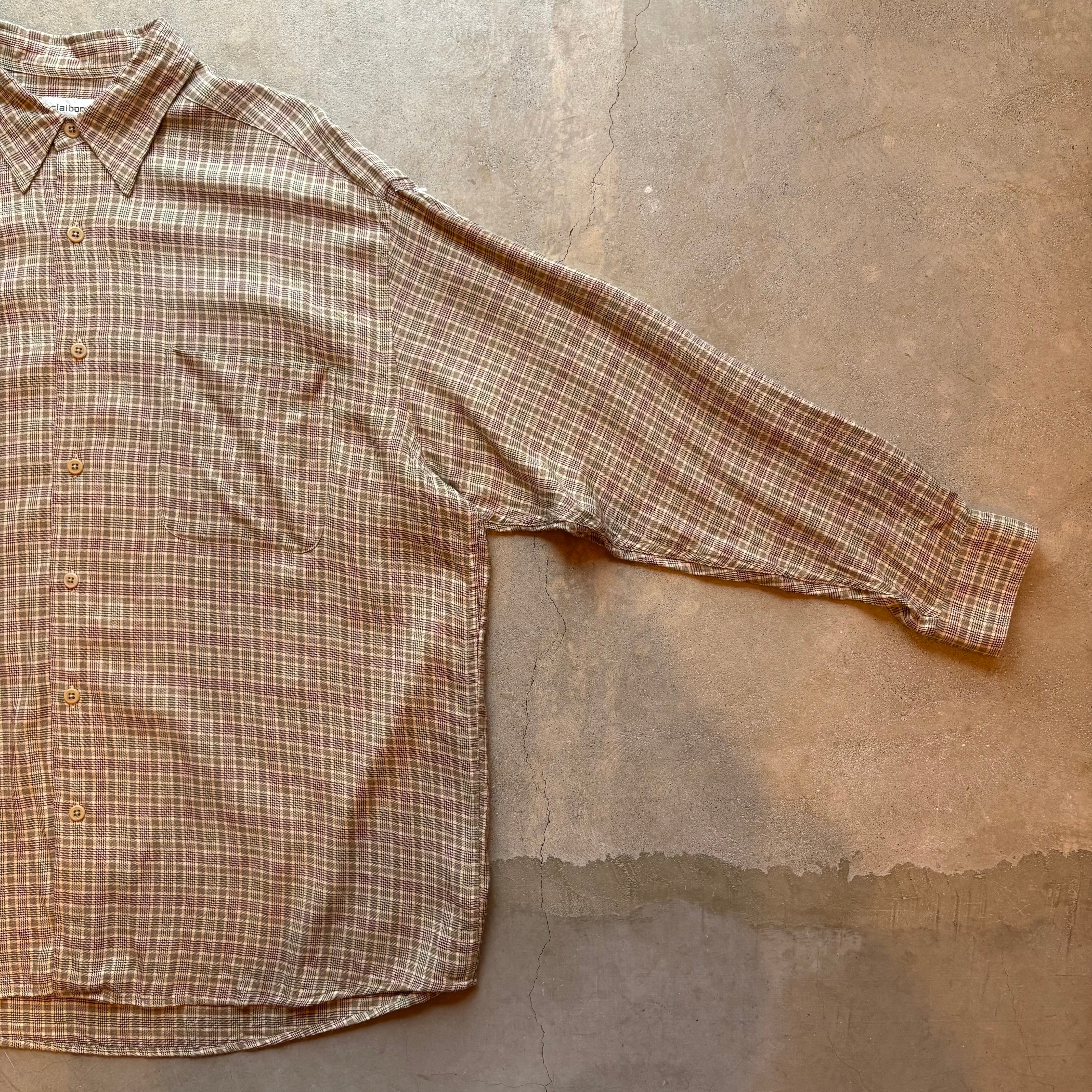 claiborne ベージュ チェック レーヨン シャツ ゆったり