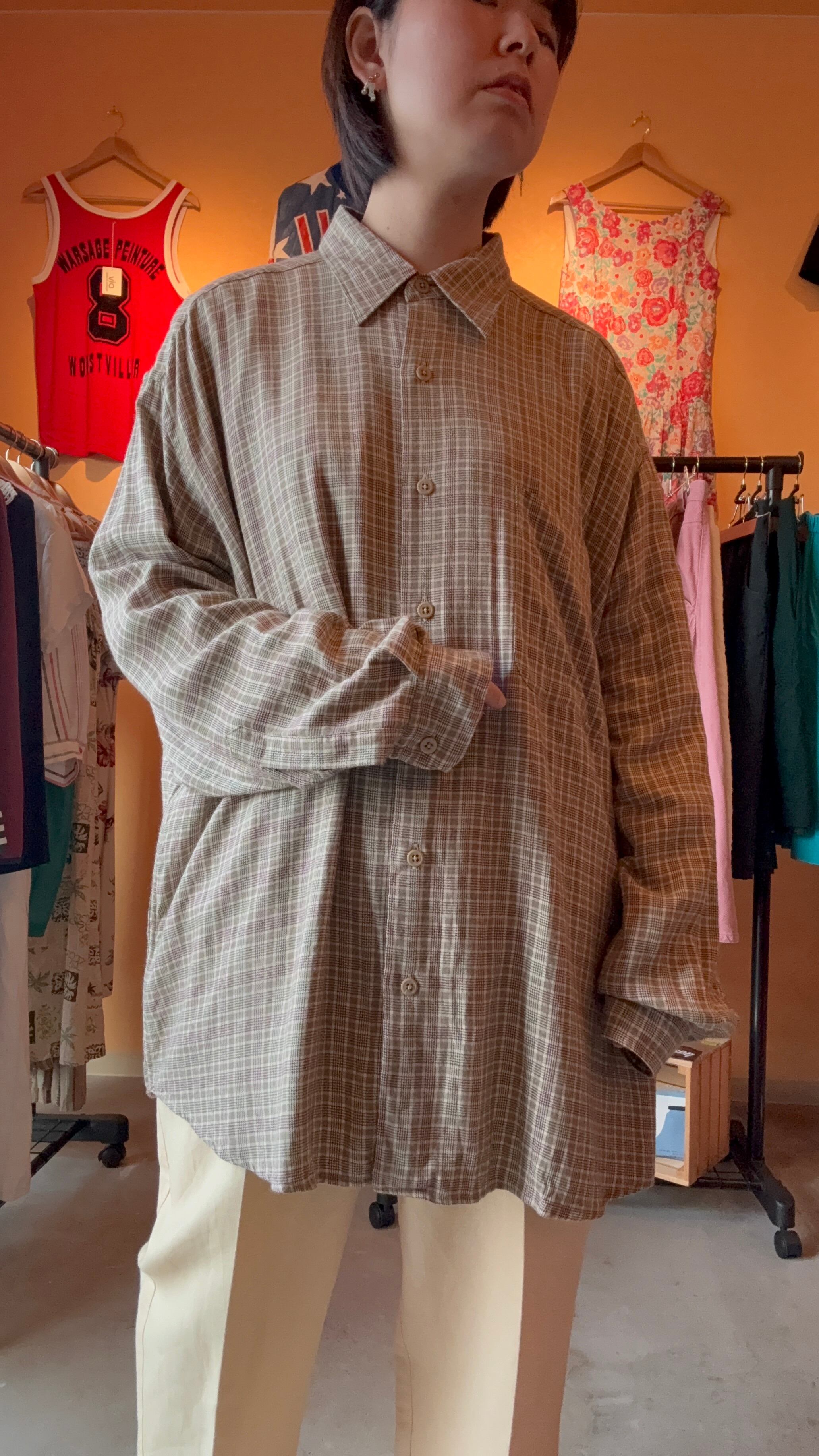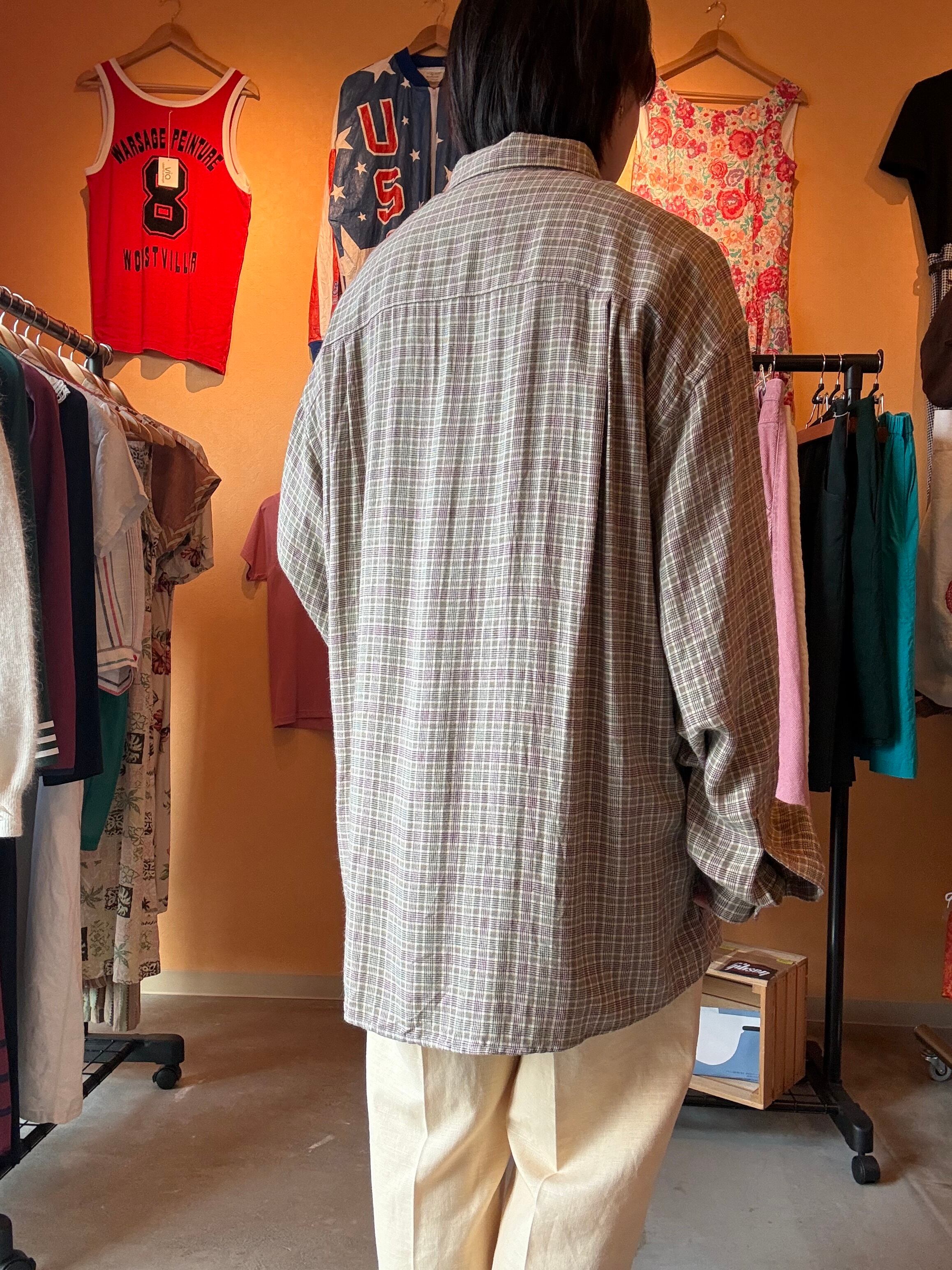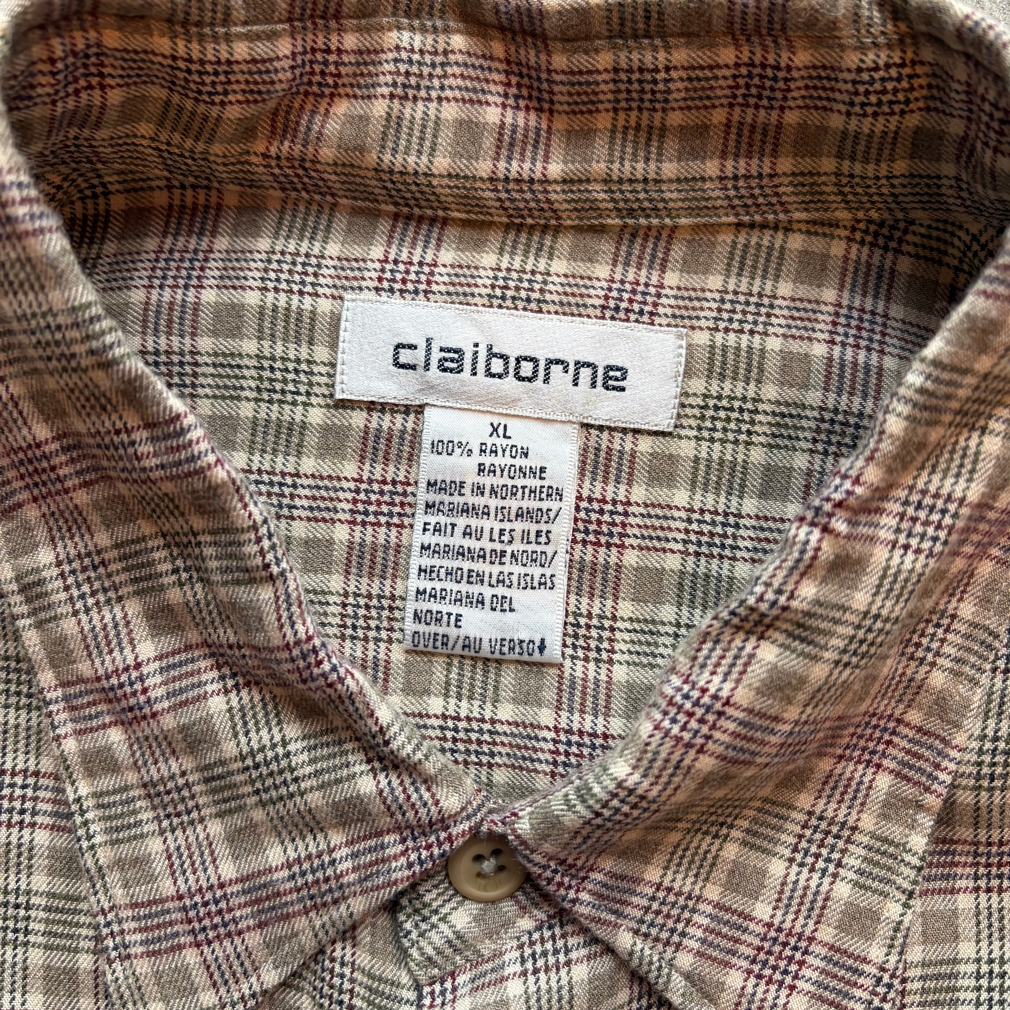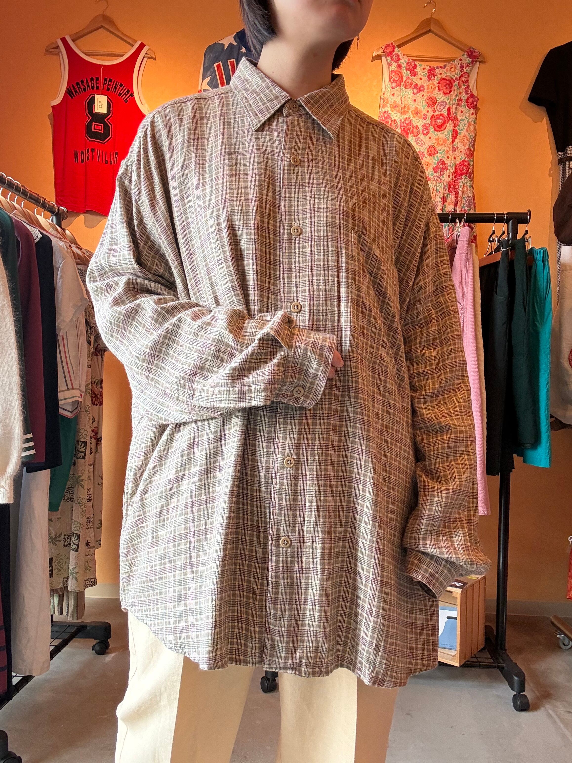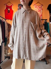 claiborne ベージュ チェック レーヨン シャツ ゆったり