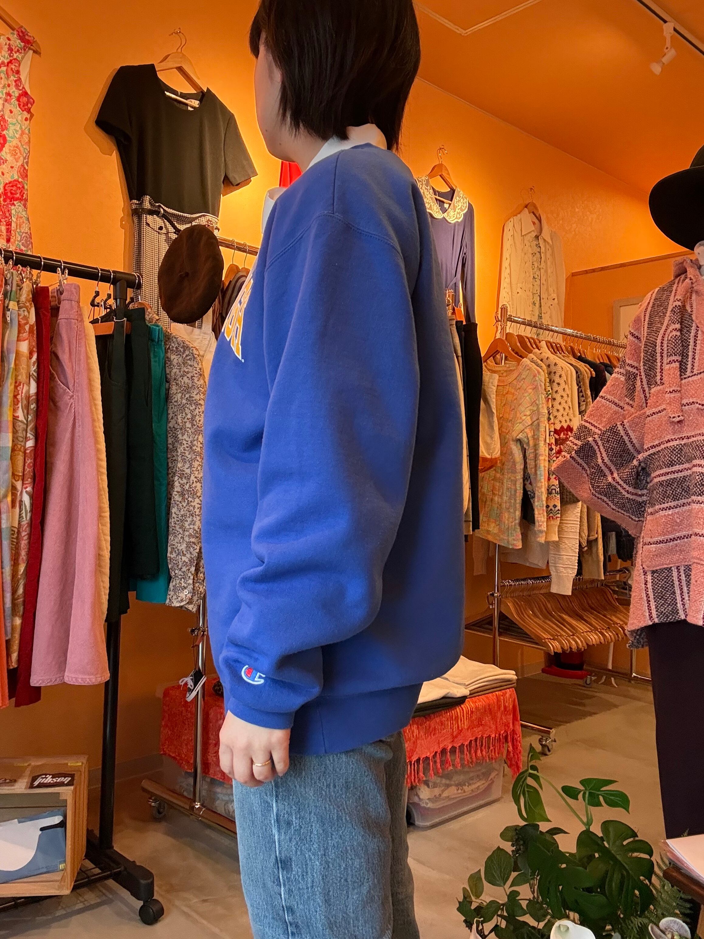 champion カレッジロゴ ブルー スウェット プルオーバー