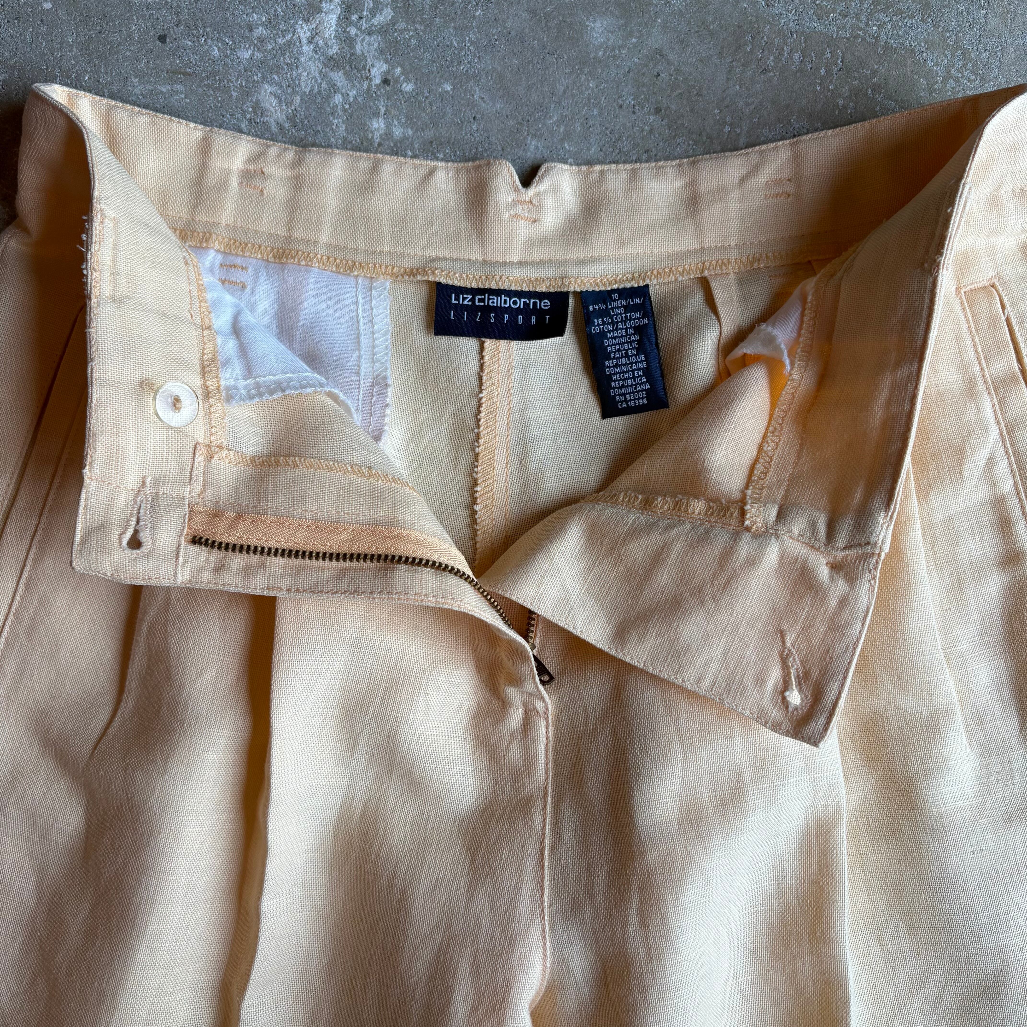 LIZ Claiborne ベージュ リネン センタープレス スラックス パンツ