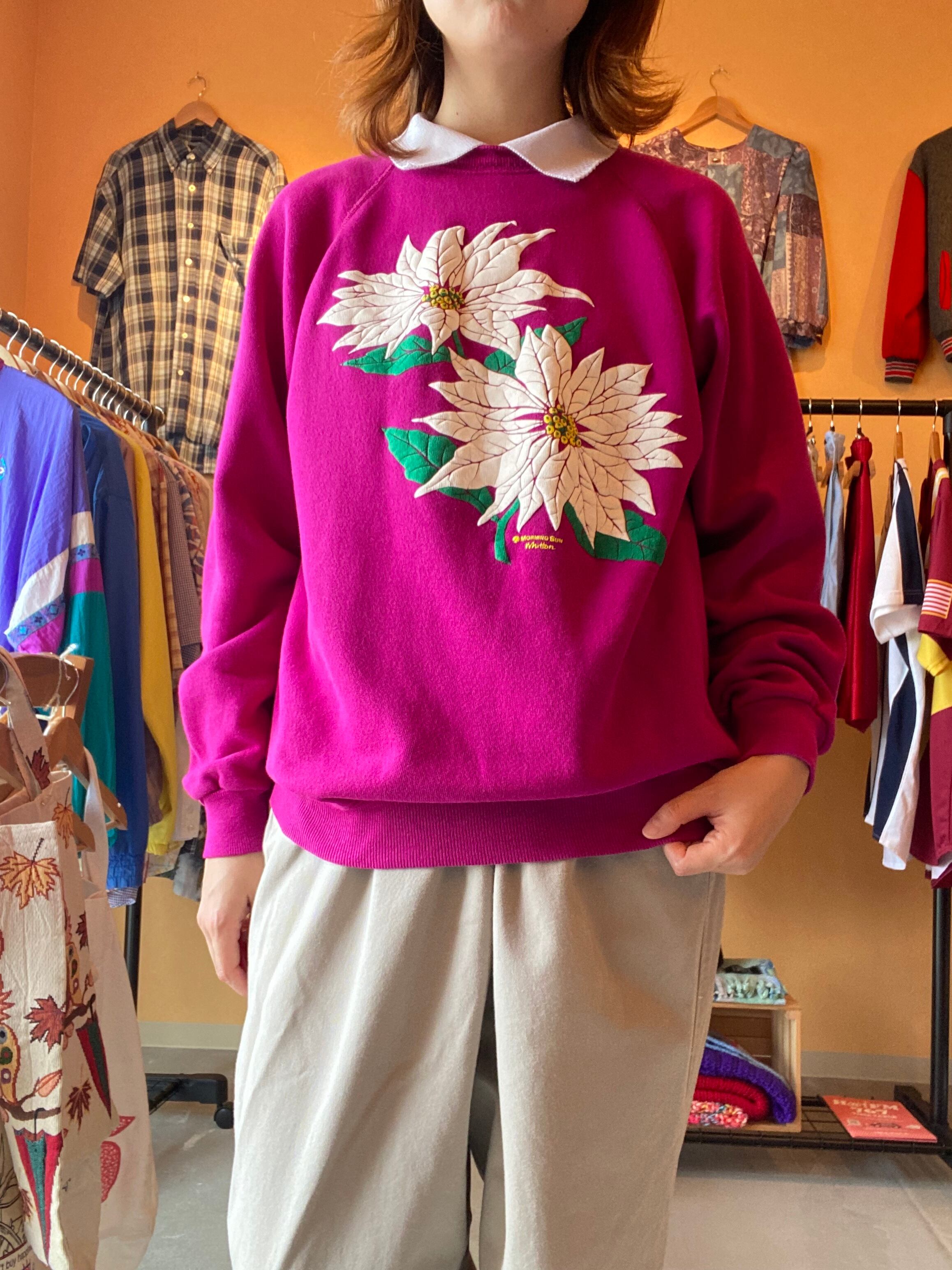 80's Hanes Morning Sun フロッキー花プリント スウェット