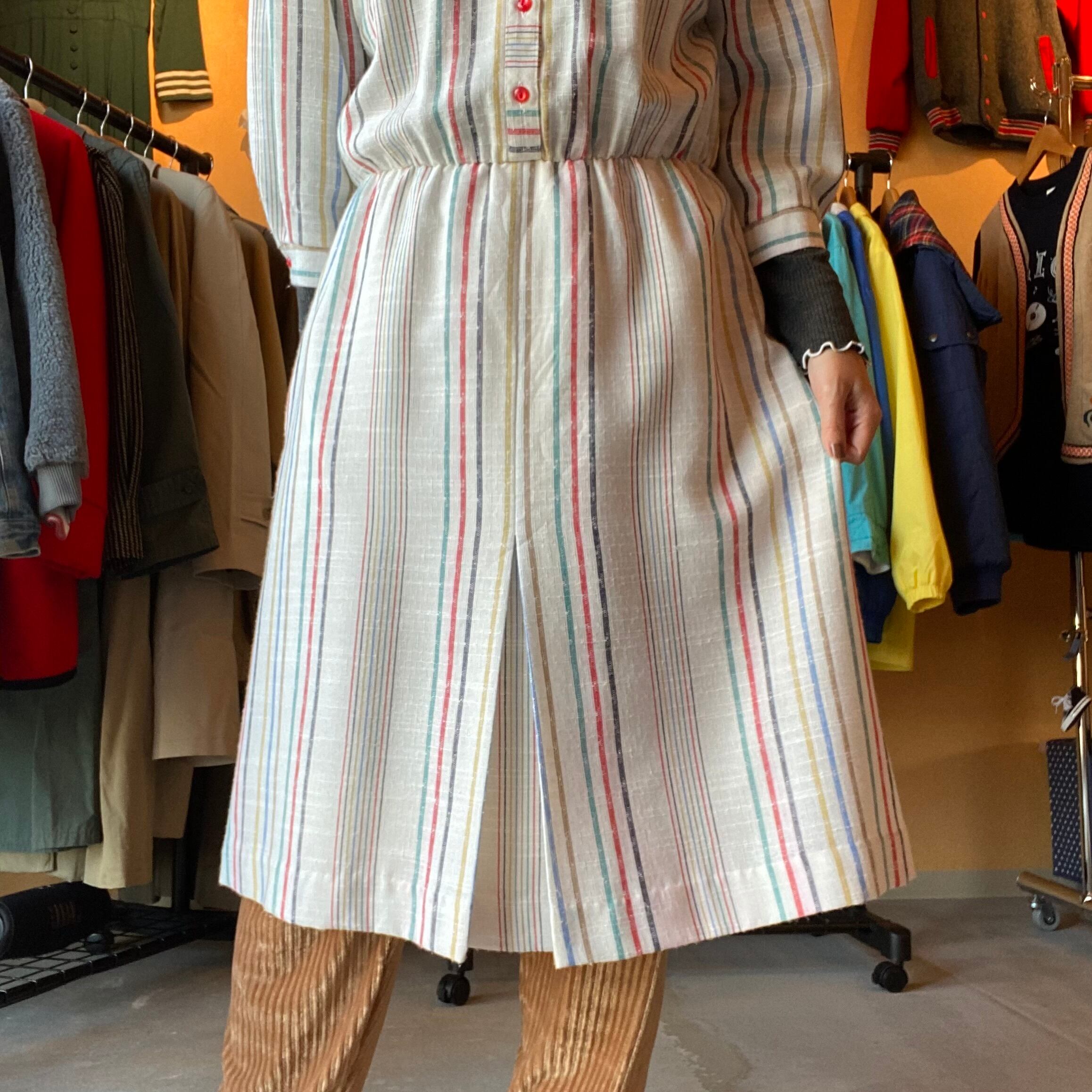 カラフルなボーダーがレトロで可愛いワンピースです。